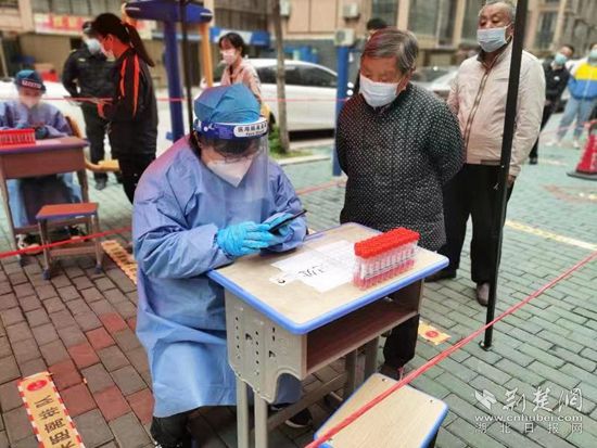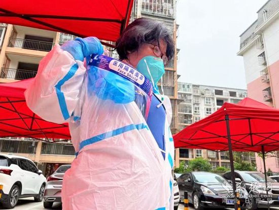 上午十點半,草草喝了幾口稀飯的她接到了上門為封控樓棟重點人員上門采樣的任務,早已輕車熟路的她換好白色防護服,拿著酒精壺、棉簽和試劑盒,一路協(xié)同醫(yī)護人員上門檢測。