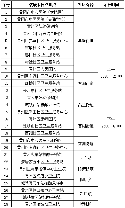附:黃州區(qū)調(diào)整后的核酸檢測采樣點