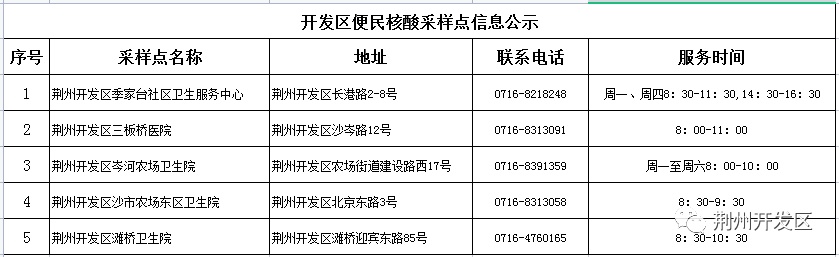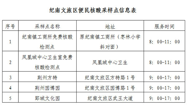 紀南文旅區(qū)2個便民核酸采樣點公告