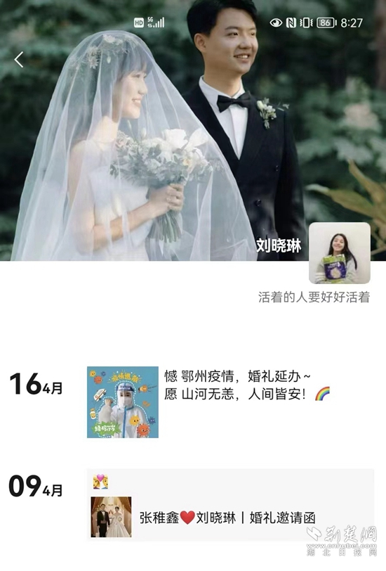 “雖然婚禮會延期,但愛和幸福永遠不會遲到”。由于多次參加疫情值守和入戶核酸檢測,劉曉琳特意為婚禮準備的美甲,早已被酒精浸泡得痕跡斑斑。
