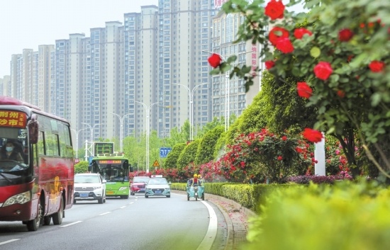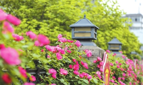鮮紅的樹狀月季、粉色的藤本月季、黃色的球狀月季……近日,5萬株月季扮靚中心城區(qū)各條道路,芬芳四溢,多處花墻成為市民喜愛的攝影背景墻、網(wǎng)紅打卡地。