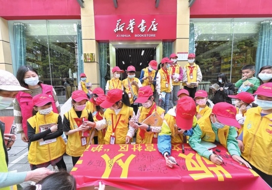 4月23日,區(qū)“掃黃打非”辦聯(lián)合區(qū)新時(shí)代文明實(shí)踐中心、區(qū)婦聯(lián)、文化宮社區(qū)組織開展“護(hù)苗·2022”進(jìn)社區(qū)活動?;顒蝇F(xiàn)場,同學(xué)們紛紛在“拒絕盜版從我做起”橫幅上進(jìn)行簽名。 (方堃攝)