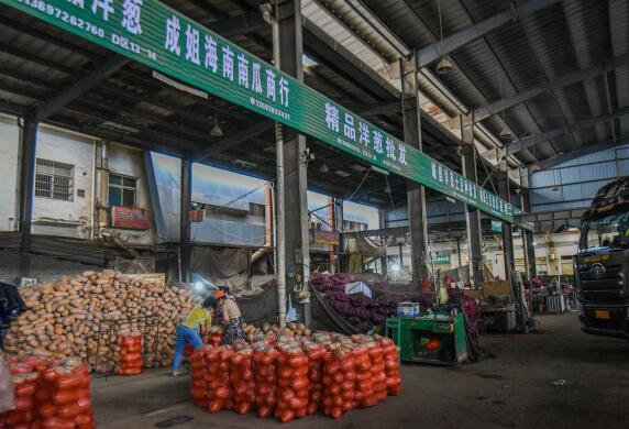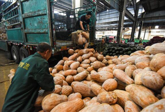 4月28日,兩湖蔬菜市場內,滿車的海南南瓜正在卸貨。