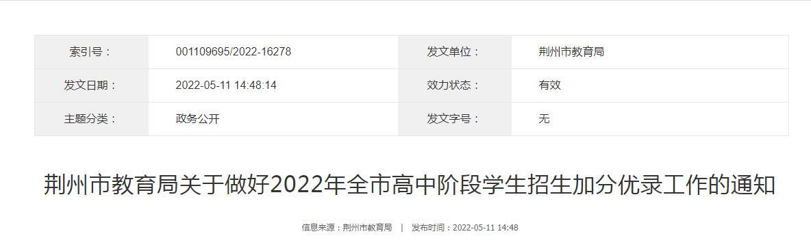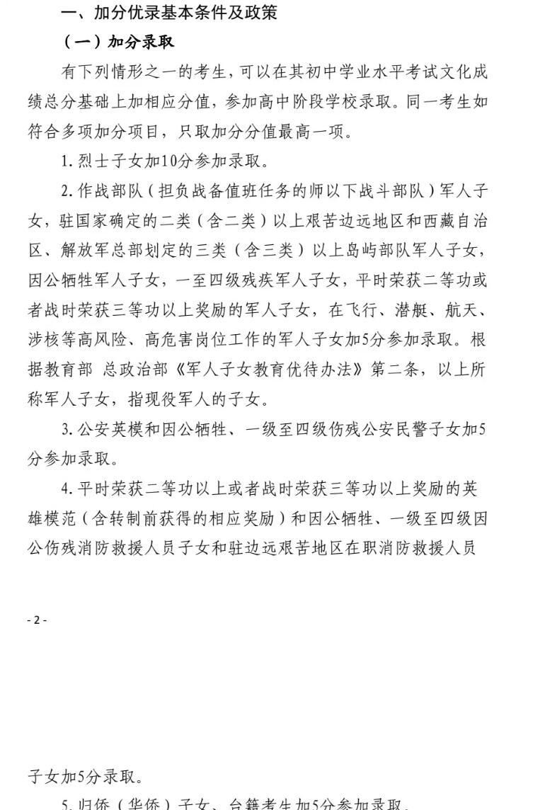 11日,荊州市教育局發(fā)布《關(guān)于做好2022年全市高中階段學(xué)校招生加分優(yōu)錄工作的通知》,以下簡(jiǎn)稱《通知》,通知發(fā)布了中招加分優(yōu)錄基本條件和政策以及基本程序和要求。《通知》顯示,烈士子女、因公犧牲軍人子女、因公犧牲消防救援人員子女、歸僑(華僑)子女等情形可加分錄取。符合加分錄取條件的考生可以在其初中學(xué)業(yè)水平考試文化成績(jī)總分基礎(chǔ)上加相應(yīng)分值,參加高中階段學(xué)校錄取。同一考生如符合多項(xiàng)加分項(xiàng)目,只取加分分值最高一項(xiàng)。符合優(yōu)先錄取的考生可以在同等條件下優(yōu)先錄取。