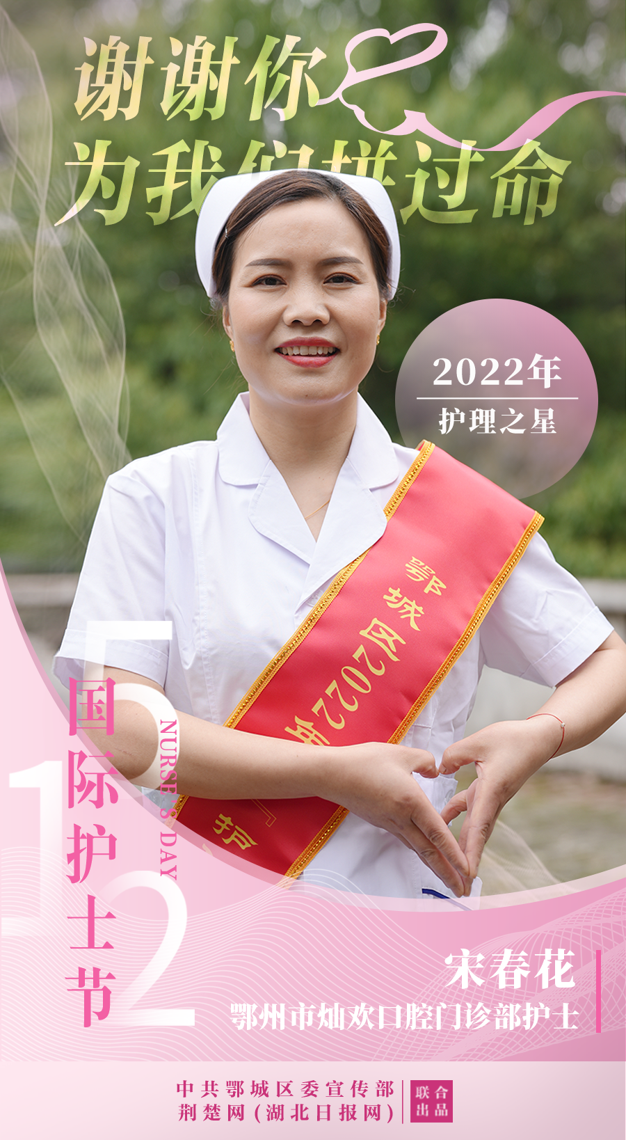 宋春花,鄂州市燦歡口腔門診部護士。她始終嚴格要求自己,爭做行家里手,努力踐行全心全意為人民服務的宗旨。