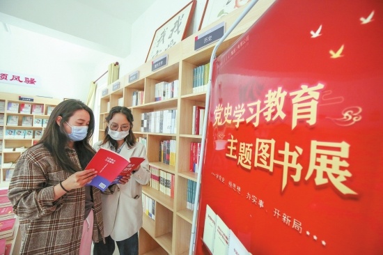 5月14日,在沙市區(qū)鑼場鎮(zhèn)新鑼社區(qū)新華書店內(nèi),社區(qū)居民正一起閱讀,分享喜愛的書籍。