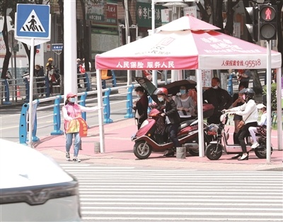 志愿者文明勸導路人遵守交通規(guī)則。張彩云 攝