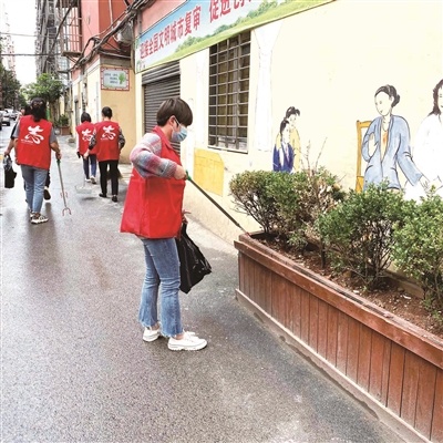 掇刀區(qū)白廟街道官堰社區(qū)志愿者定期在轄區(qū)街巷撿拾垃圾,保持街道干凈亮麗。 趙曉霞 攝