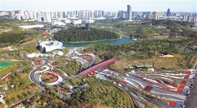 鳥瞰園博園,城市越來越美麗。 朱舜 攝