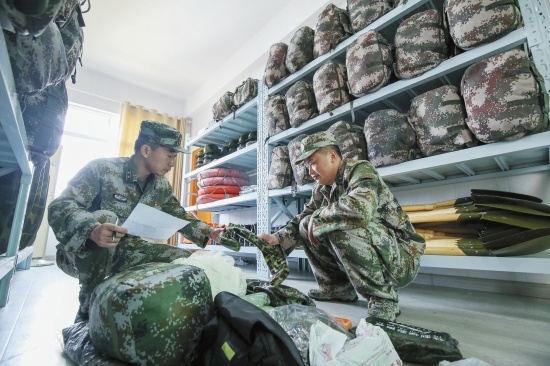 日前,沙市區(qū)人武部民兵在鑼場鎮(zhèn)武裝部戰(zhàn)備物資器材庫,對(duì)防汛器材設(shè)施進(jìn)行檢查。