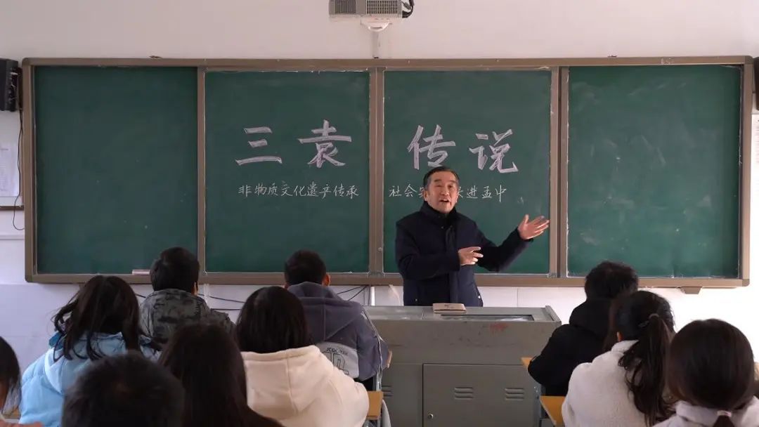 ▲傳承人王書文在學生講述“三袁傳說”的故事