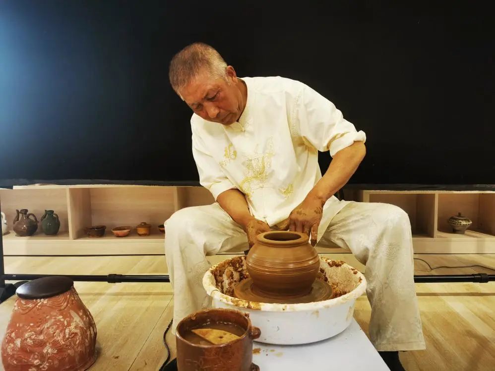 ▲傳承人楊立友正在制作泥陶