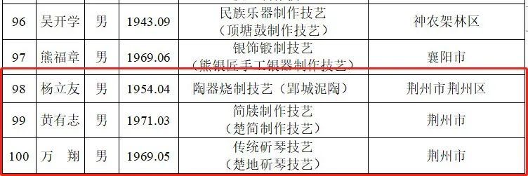 26日,省文旅廳公布第六批省級非物質文化遺產代表性傳承人名單,荊州市7人獲批第六批省級非遺代表性傳承人。