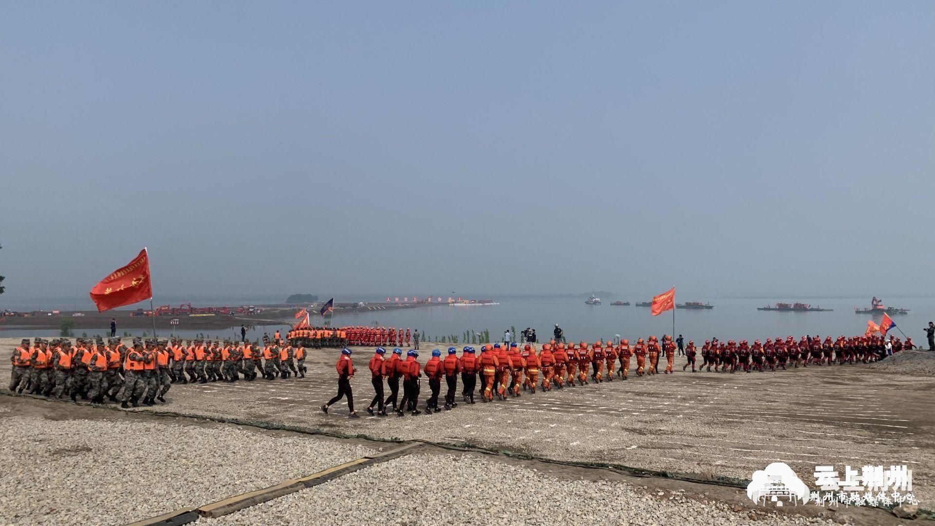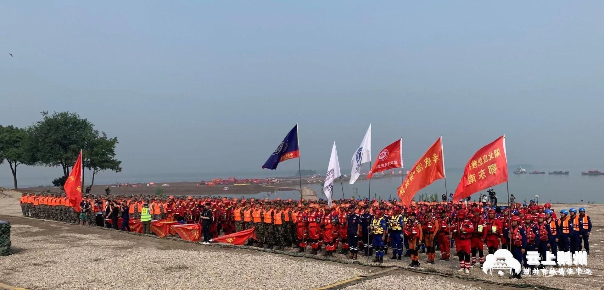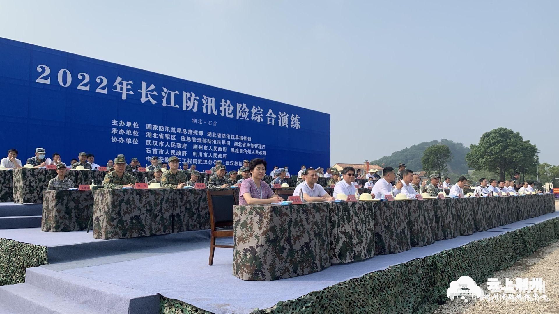 5月31日上午9時(shí),國(guó)家防總和湖北省防汛抗旱指揮部在石首市筆架灣舉行2022年長(zhǎng)江流域防汛搶險(xiǎn)綜合演練。