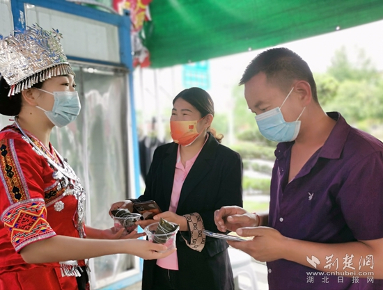 5月30日,杭瑞高速公路“瑤鄉(xiāng)雋妞”志愿者將一顆顆親手包裹著甜蜜、溫暖與真情的粽子,送到一直堅(jiān)守在卡點(diǎn)執(zhí)勤檢查的防疫人員手中。嘗了一口粽子的卡點(diǎn)防疫工作人員樂呵呵道:“杭瑞高速瑤鄉(xiāng)雋妞送來的這些粽子,味道真不錯,有甜度,有溫度,太貼心了,也太感人了?!?/p>