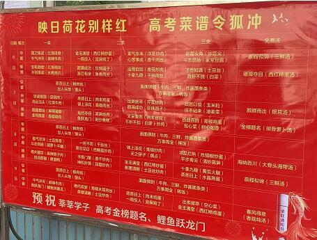“我盛了‘金雞報(bào)喜’‘圓滿成功’和‘才思如涌’3個(gè)菜,還有一碗‘金玉滿堂’湯,祝愿同學(xué)們都能在考試中取得滿意的成績(jī)!”高三學(xué)生胡永良喜笑顏開(kāi)道。
