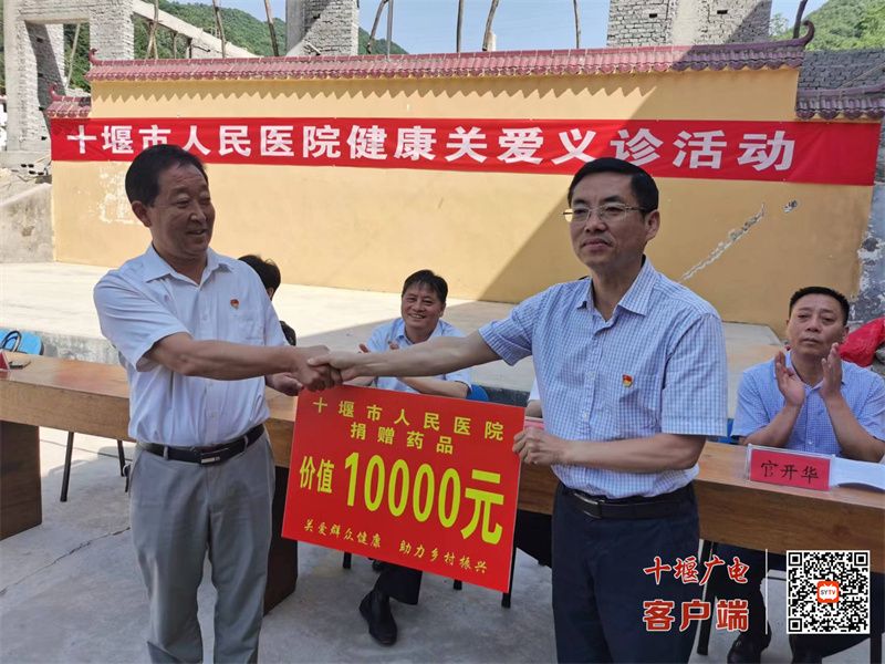 為提高當?shù)亟】邓?,解決群眾實際困難,醫(yī)院總會計師譚向東代表十堰人醫(yī)現(xiàn)場捐贈了價值10000元的常用藥品。