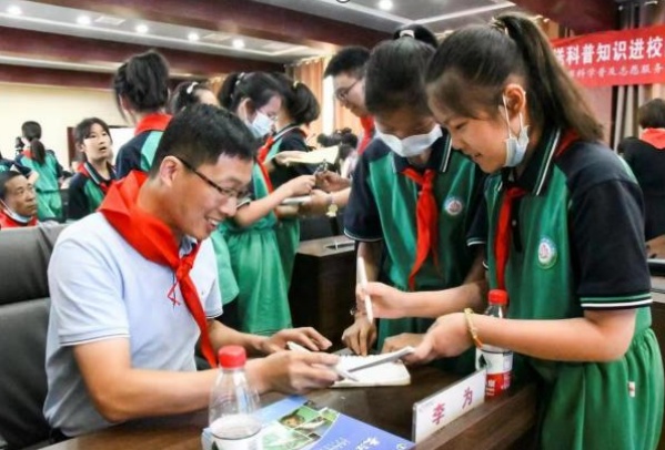 隨后的答疑互動(dòng)環(huán)節(jié),同學(xué)們爭先恐后向自己喜歡的科學(xué)家提問題,科學(xué)家一一答疑解惑。同學(xué)們被科學(xué)家淵博的學(xué)識(shí)、卓越的成果所折服,一顆顆熱愛科學(xué)的種子已經(jīng)悄悄地在心里生根、發(fā)芽?;顒?dòng)結(jié)束后,孩子們捧著小本本排起了長長的簽名隊(duì),與他們心中的科學(xué)家明星“親密接觸”,久久不愿離去?,F(xiàn)場最愛提問的五年級(jí)李臨熙同學(xué)表示,這次科普?qǐng)?bào)告活動(dòng)不僅讓他學(xué)到了很多有趣、有用的知識(shí),也對(duì)科學(xué)家這個(gè)群體有了全新的認(rèn)識(shí)和了解,希望將來能夠成為像他們那樣優(yōu)秀的人。據(jù)悉,本次青年科學(xué)家走進(jìn)洪湖市實(shí)驗(yàn)小學(xué)公益科普論壇活動(dòng),洪湖市教育局通過洪湖政府公眾號(hào)“今日洪湖”“精彩洪湖”推送現(xiàn)場實(shí)況云直播,當(dāng)天,洪湖市全體中小學(xué)生在班級(jí)里通過班班通同步收看了活動(dòng)。