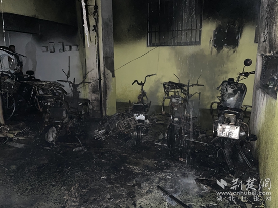很快,明火成功被撲滅,四輛電動車最終被燒得只剩下鐵架子。后經(jīng)現(xiàn)場初步判斷,樓上住戶“飛線”到一樓給電動車充電,很可能因此導(dǎo)致電器線路故障引發(fā)火災(zāi)。目前,事故具體原因正在進一步調(diào)查中。