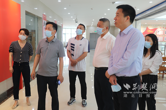 陽(yáng)新縣委書記萬(wàn)鼎(右二)調(diào)研陽(yáng)新圖書館。通訊員 供圖