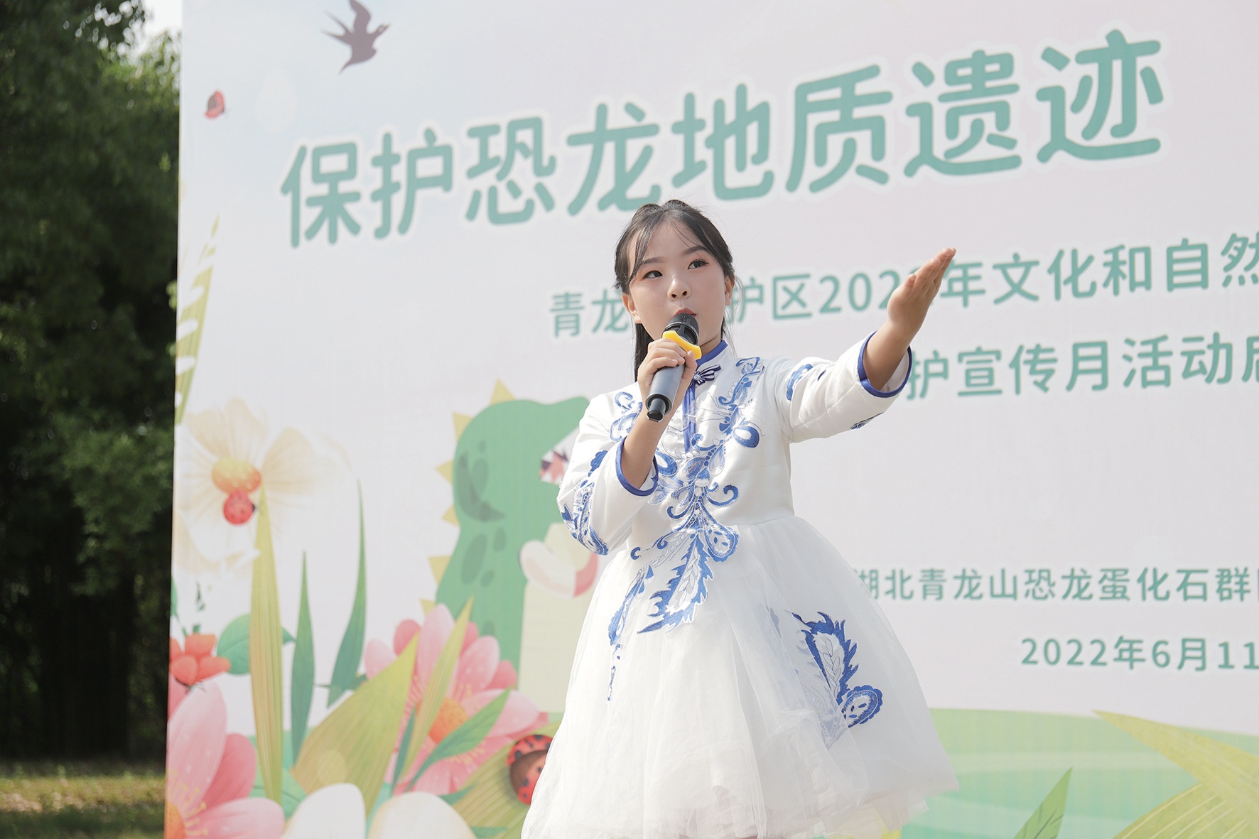 “讓我們行動(dòng)起來(lái),爭(zhēng)做恐龍地質(zhì)遺跡保護(hù)的小衛(wèi)士,像保護(hù)眼晴、愛(ài)惜生命一樣保護(hù)好恐龍地質(zhì)遺跡,不偷挖、盜挖恐龍蛋,不交易、買賣恐龍蛋……”小記者代表李華博、李坤陽(yáng)現(xiàn)場(chǎng)發(fā)出保護(hù)文化和自然遺產(chǎn)倡議,希望現(xiàn)場(chǎng)的小記者們行動(dòng)起來(lái),爭(zhēng)做恐龍地質(zhì)遺跡保護(hù)的小衛(wèi)士、恐龍地質(zhì)遺跡保護(hù)的宣傳員和現(xiàn)代科學(xué)知識(shí)的傳播者,傳播珍愛(ài)地球,保護(hù)環(huán)境的理念,自覺(jué)踐行“綠水青山就是金山銀山”的發(fā)展理念,共建人與自然和譜共生的美麗家園。
