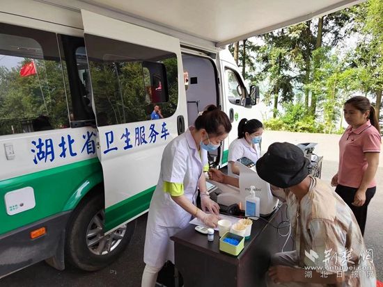 衛(wèi)生服務(wù)車(chē)開(kāi)進(jìn)田間地頭為群眾免費(fèi)體檢。通訊員 供圖