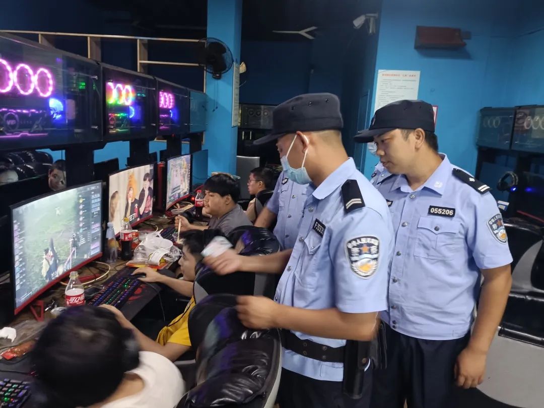▲石首市公安局民警在網(wǎng)吧核查人員身份信息
