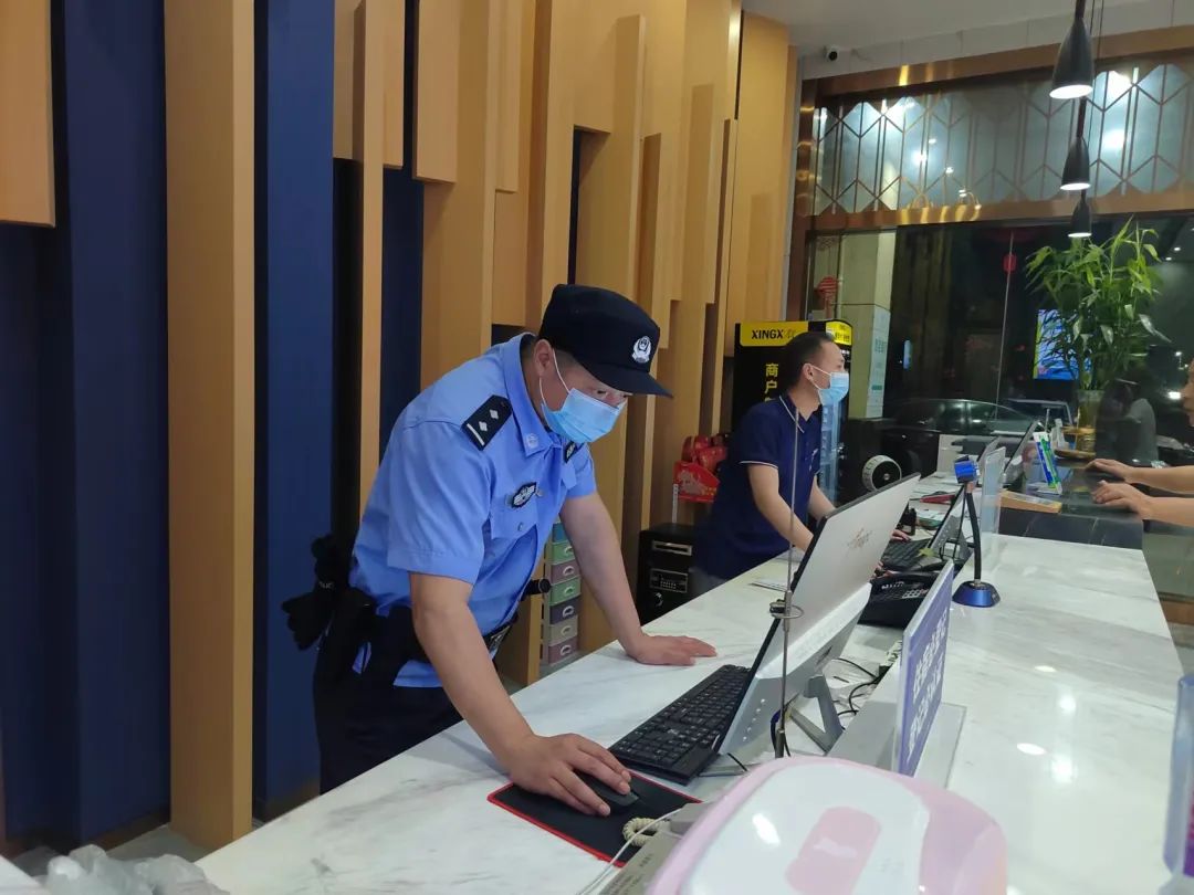 ▲江陵縣公安局郝穴派出所民警檢查旅店實(shí)名入住情況