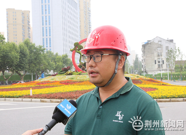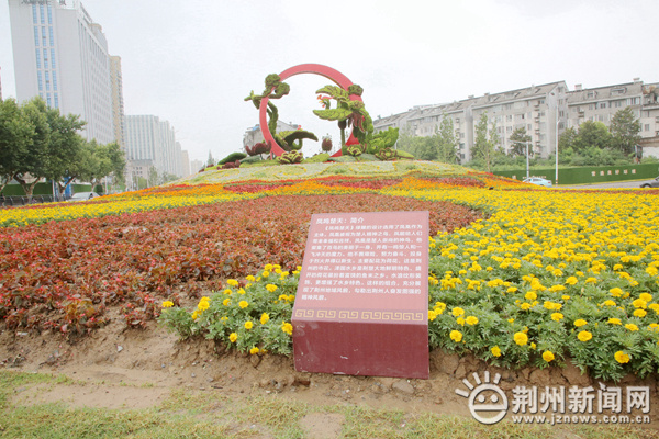 “楚人崇鳳,綠雕選用鳳凰作為主體,體現(xiàn)鳳鳴楚天的寓意,展現(xiàn)了荊州人民奮發(fā)圖強(qiáng)的精神風(fēng)貌?!睋?jù)荊州市政府投資工程建設(shè)管理中心工程一部副部長(zhǎng)周云介紹,鳳鳴楚天扎景綠雕高8米,長(zhǎng)25米,綠雕主體占地面積約314平方米。同時(shí),雕塑還配以荊州市市花——荷花,彩虹和水浪紋臺(tái)形裝飾等,這樣的組合,充分展現(xiàn)了荊州地域風(fēng)貌、水鄉(xiāng)特色和荊州人奮發(fā)圖強(qiáng)的精神風(fēng)貌,完美的詮釋出荊楚文化。