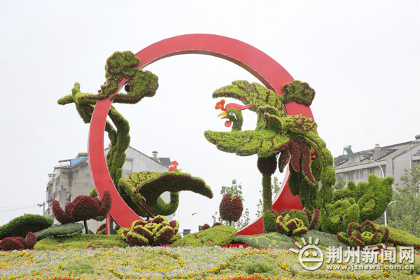 已完工的綠雕美觀大氣,與東門古城風(fēng)景交相呼應(yīng),據(jù)悉,綠雕采用人工滿栽五色草、景天、佛甲草等綠植,綠雕下部及交通島栽植四季海棠、夏瑾、孔雀草、一串紅、藍(lán)花鼠尾草等色彩繽紛的時(shí)令草花。夜間亮化方面,在鳳凰和紅色圓環(huán)輪廓上布置有燈帶,綠雕底座周圍設(shè)置投光燈,讓綠雕在夜間達(dá)到流光溢彩的視覺效果。該項(xiàng)目的建成,緩解了東門進(jìn)出城車輛交通壓力,極大推動(dòng)城市綠化的提檔升級(jí),營(yíng)造更優(yōu)質(zhì)的旅游環(huán)境,將為荊州創(chuàng)建全國(guó)文明城市增添動(dòng)力。