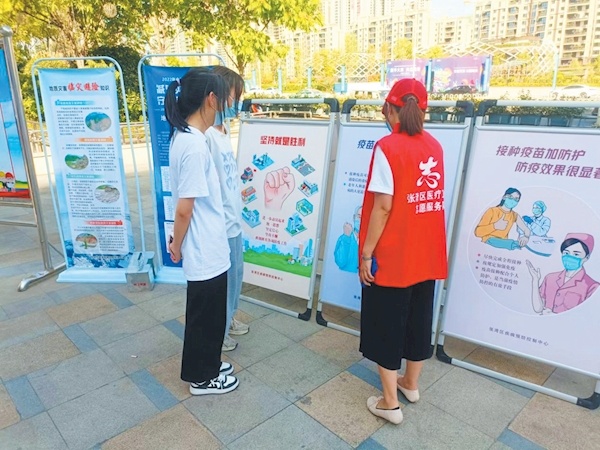 活動(dòng)現(xiàn)場,區(qū)疾控中心工作人員通過現(xiàn)場咨詢、展板宣傳、發(fā)放折頁資料等方式,向市民集中宣講安全生產(chǎn)法律法規(guī)及常識,提供政策法規(guī)、安全知識等方面的咨詢與服務(wù)。
