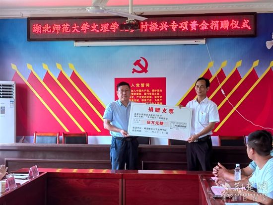 隨后,湖北師范大學(xué)文理學(xué)院機關(guān)第一黨支部和子山村黨支部聯(lián)合開展了6月份支部主題黨日活動。常務(wù)副院長楊學(xué)斌代表學(xué)校向子山村捐贈5萬元鄉(xiāng)村振興專項資金。