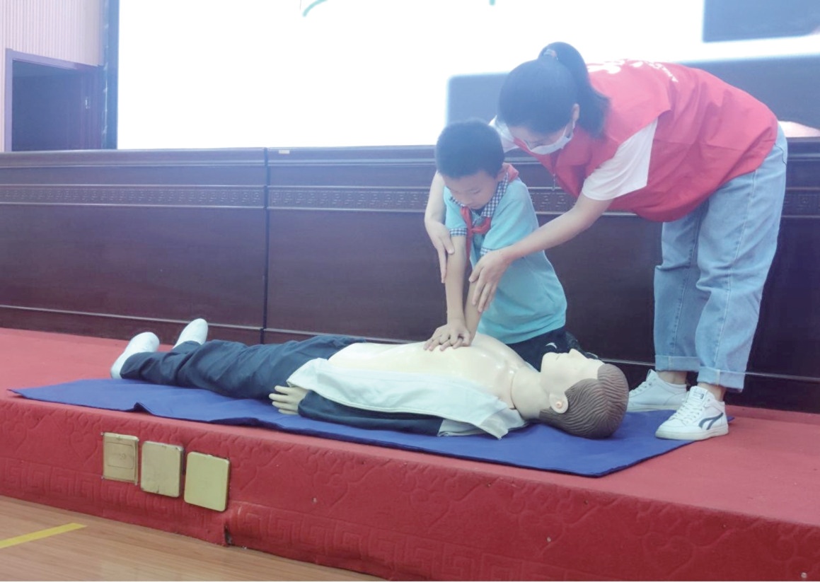 中國紅十字應(yīng)急培訓(xùn)師杜成芬為在場學(xué)生宣講。杜成芬結(jié)合自身經(jīng)歷向大家普及了溺水事件在夏季多發(fā)的原因和高危性。她說,我國15歲以下兒童首要死因是意外事故,而溺水約占6成,溺水后4—6分鐘,身體將遭受不可逆的傷害。