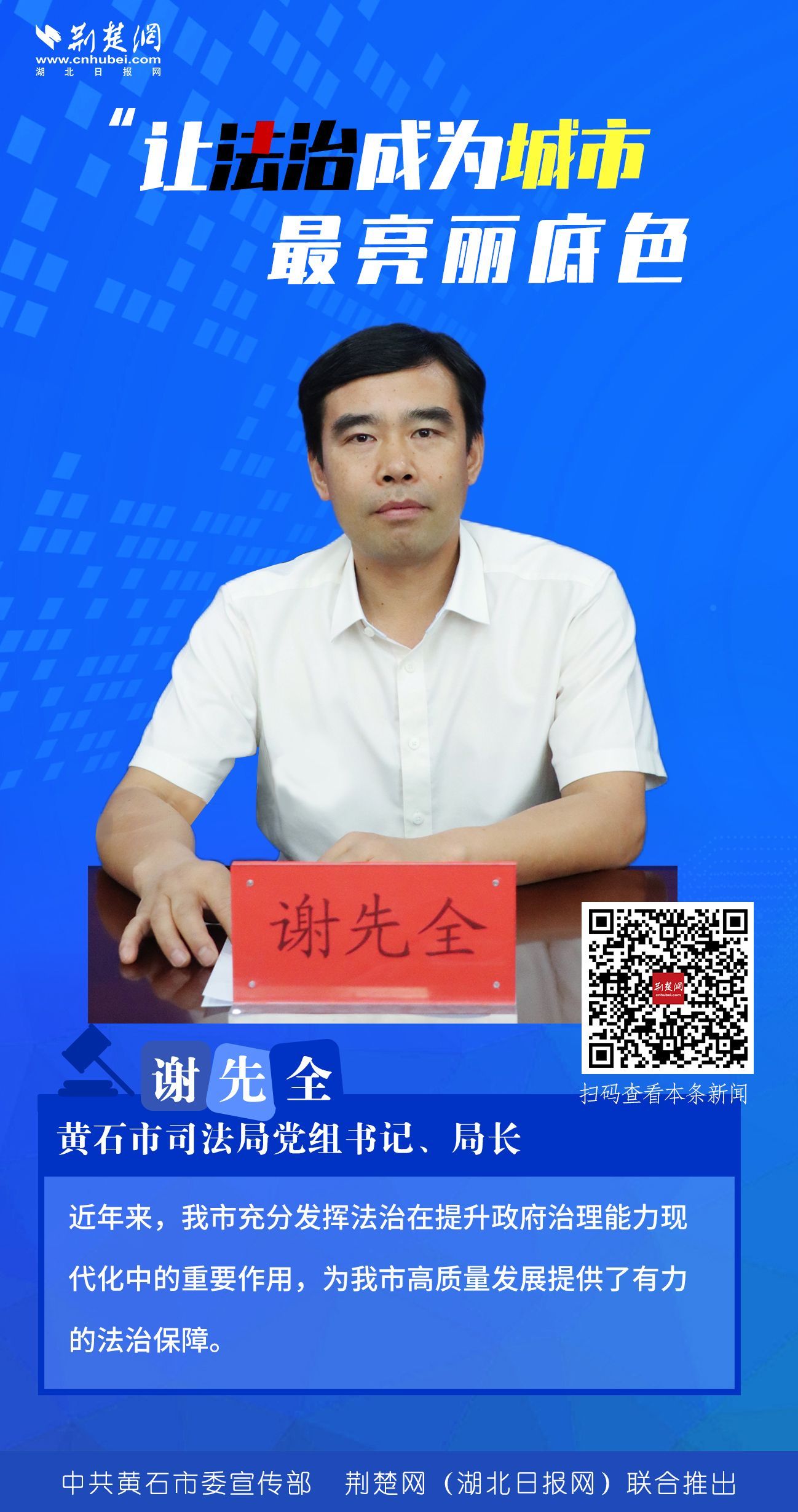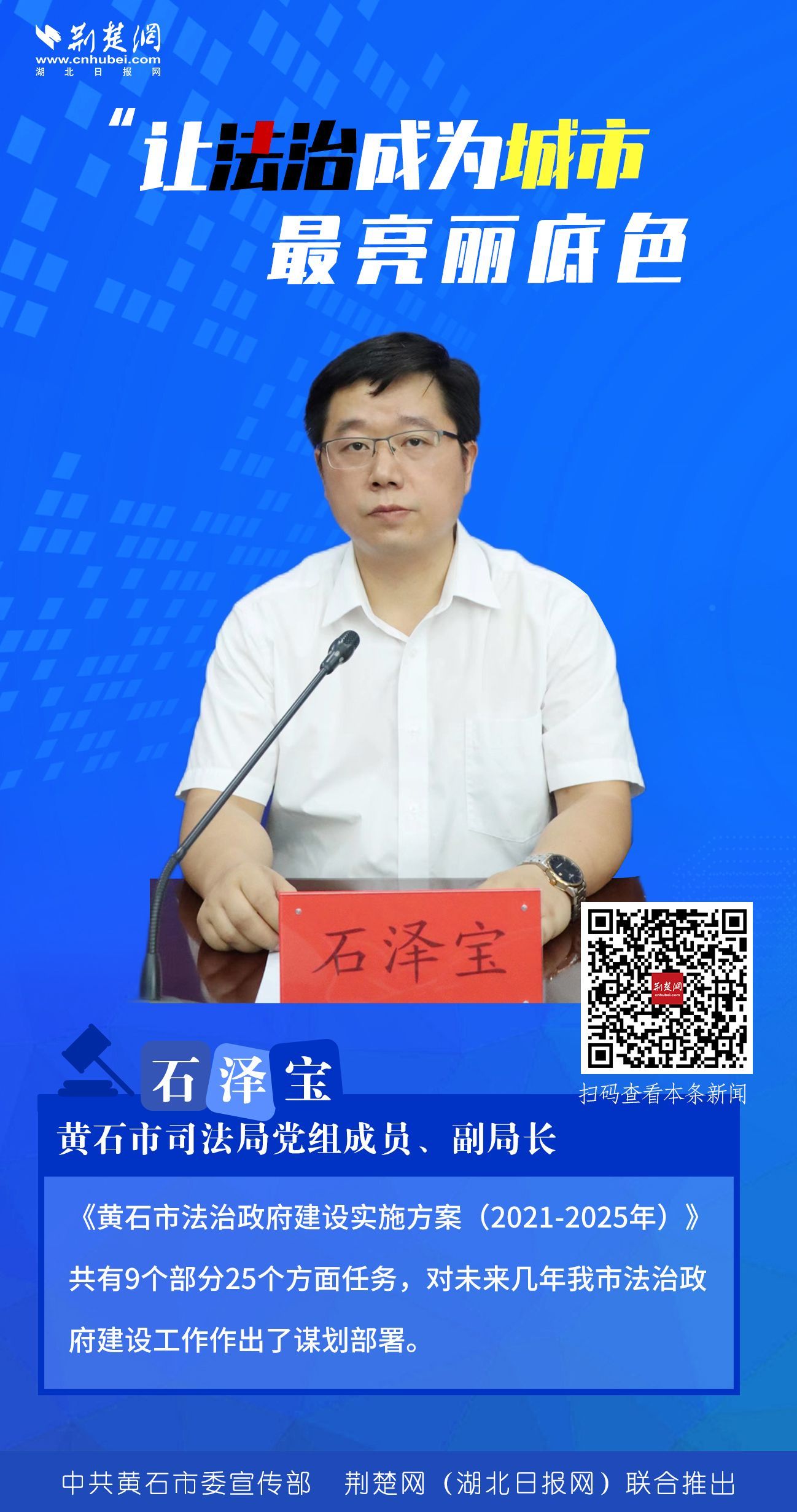 近年來,黃石市堅持以建成人民滿意的法治政府為目標,以《黃石市法治政府建設實施方案(2021-2025年)》為抓手,不斷將法治政府建設向縱深推進,讓法治成為城市最亮麗底色。
