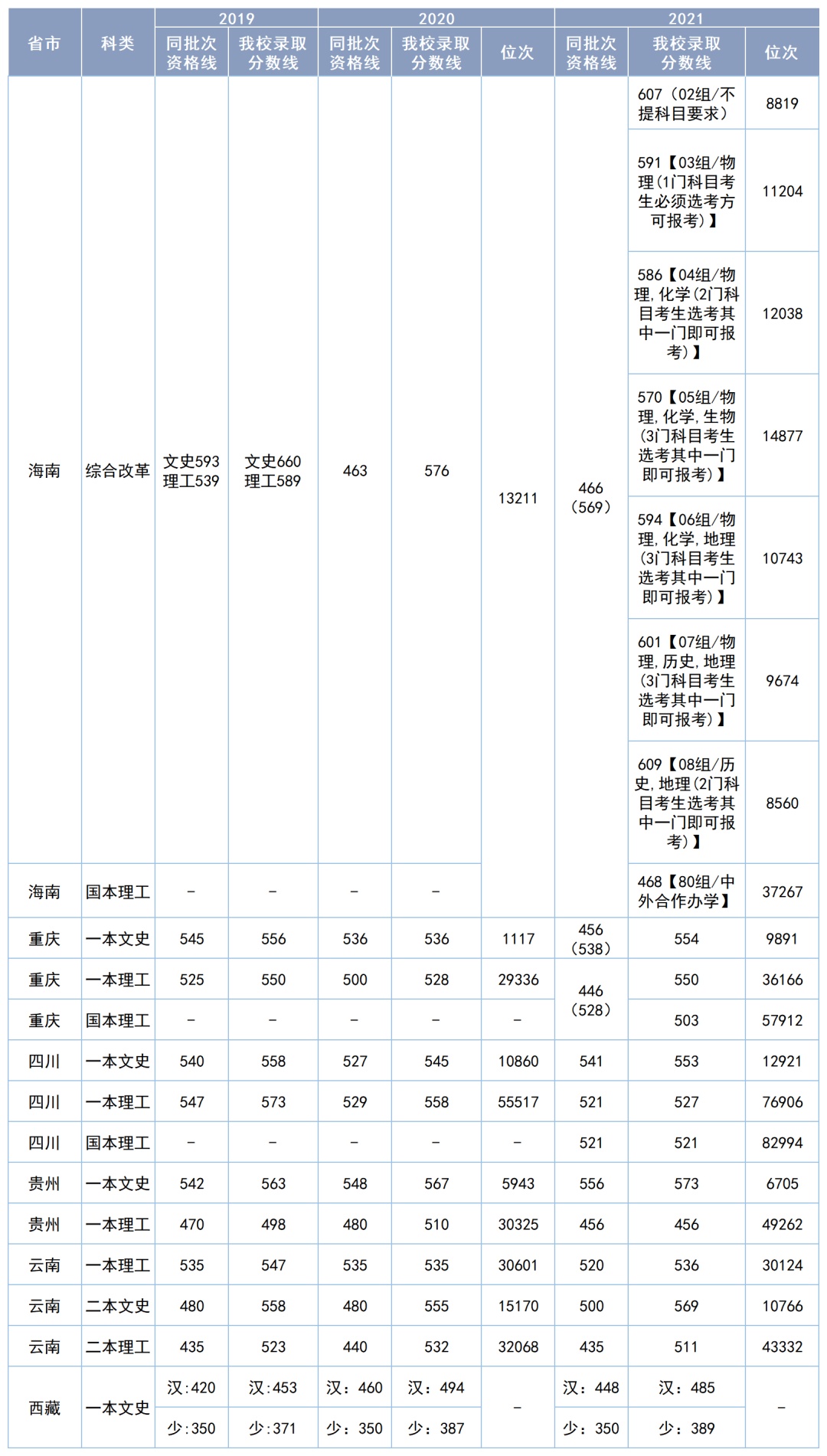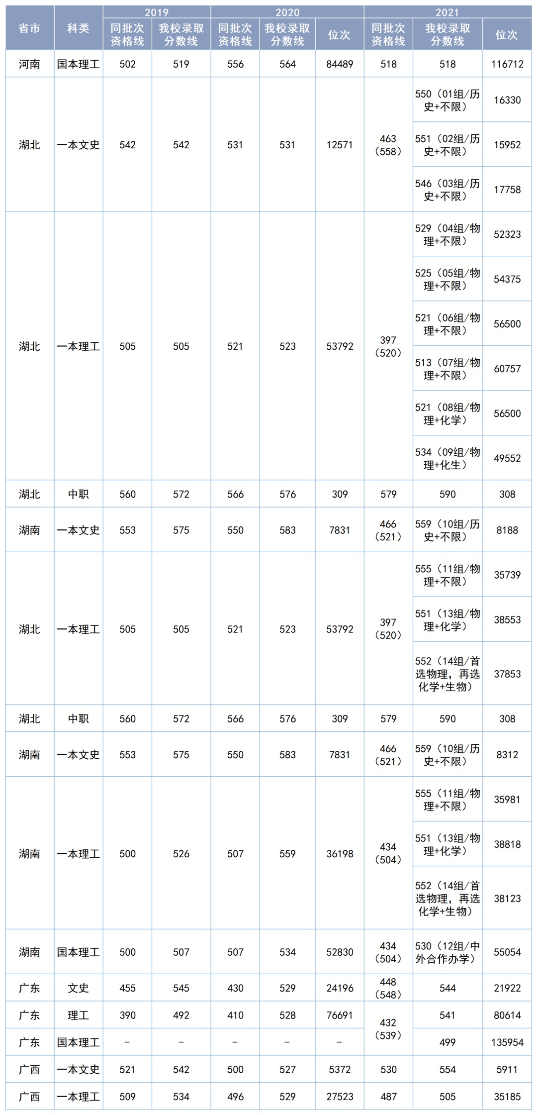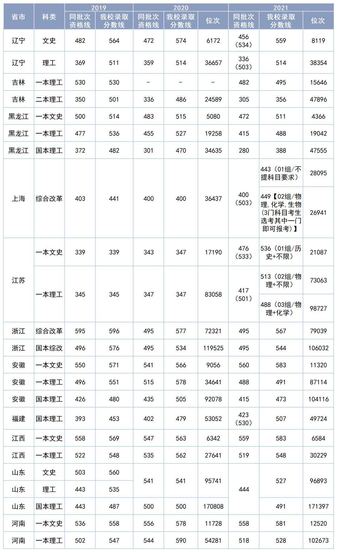 長(zhǎng)江大學(xué)2019-2021年各省(市)