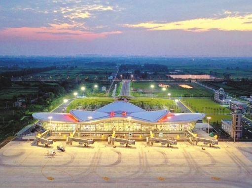 荊州沙市機(jī)場(chǎng)航站樓華燈初上。(梅聞攝)