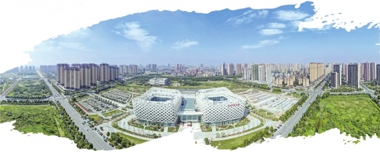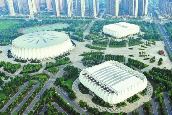 現(xiàn)代氣息濃郁的荊州市文化體育中心。(梅聞攝)