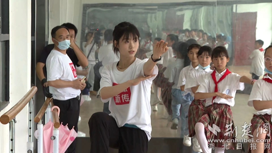 同時(shí),武漢體育學(xué)院新聞傳播學(xué)院暑期社會實(shí)踐隊(duì)在浠水縣開展了“探尋體育初心·助力鄉(xiāng)村振興” 為主題的“三下鄉(xiāng)”社會實(shí)踐活動(dòng)。在縣實(shí)驗(yàn)小學(xué)內(nèi),曾榮獲全國青運(yùn)會武術(shù)套路比賽冠軍的武體學(xué)子連志蘋帶領(lǐng)學(xué)生練習(xí)武術(shù),讓孩子們近距離感受體育的魅力和運(yùn)動(dòng)的快樂。