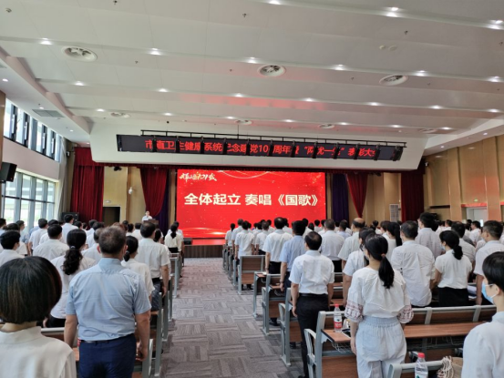 大會在雄壯的《國歌》中拉開帷幕,市衛(wèi)健委班子成員、副縣級干部、委機關(guān)全體黨員干部,市直各醫(yī)療衛(wèi)生健康單位全體班子成員、相關(guān)科室負(fù)責(zé)人,市直民辦醫(yī)院主要負(fù)責(zé)人,新發(fā)展黨員,受表彰的優(yōu)秀共產(chǎn)黨員、優(yōu)秀黨務(wù)工作者、先進基層黨組織書記及老黨員代表共計200余人,全體起立齊唱國歌。