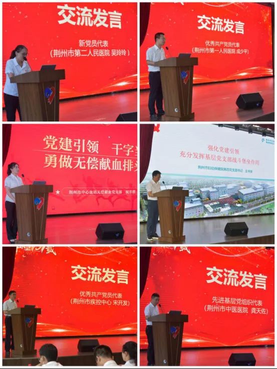 新黨員代表作表態(tài)發(fā)言,5個受表彰的先進集體和優(yōu)秀個人作經(jīng)驗交流