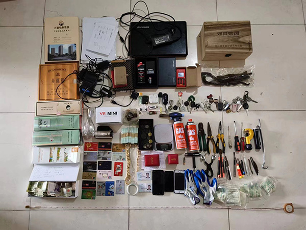 圖為湖北荊州松滋警方繳獲的作案工具及被盜財(cái)物。