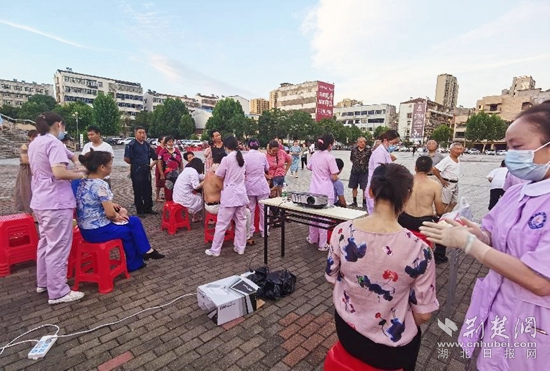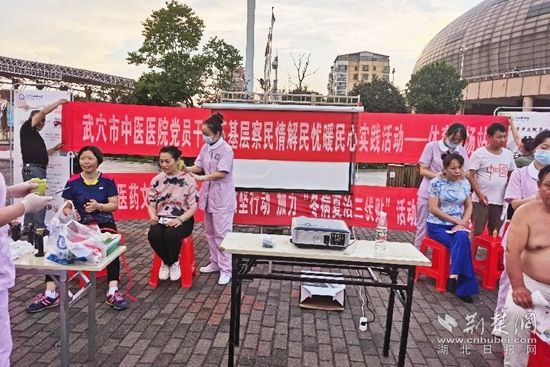荊楚網(wǎng)(湖北日報網(wǎng))訊(通訊員 耿文輝 王軍珍)首夏猶清和,芳草亦未歇。7月1日傍晚,武穴市中醫(yī)醫(yī)院在體育館廣場開展了中醫(yī)適宜技術(shù)展示及助力323攻堅(jiān)行動、冬病夏治三伏貼文化節(jié)大型義診活動。