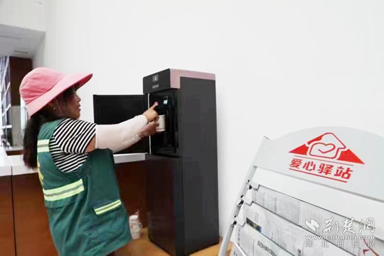 黃梅縣總工會在驛站內(nèi)配備了微波爐、空調(diào)、飲水機、工具箱、雨傘、應(yīng)急醫(yī)藥箱、手機充電器等物品,切實為戶外職工提供“冷可取暖、熱可納涼、渴可喝水、累可歇腳、臨時避雨”等愛心服務(wù)。
