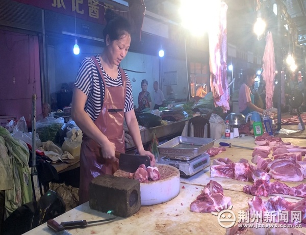 商販楊老板介紹,因?yàn)樘鞖鉄帷⑦M(jìn)價(jià)高,坐頭肉現(xiàn)在17元/斤,前夾肉16元/斤,最低不能少于15元/斤。