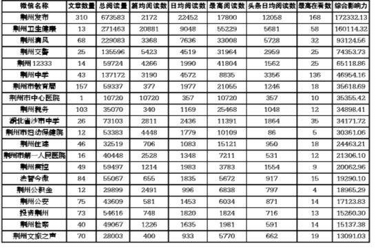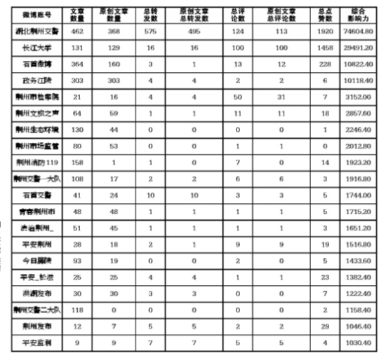 本次統(tǒng)計(jì)的是2022年6月1日至2022年6月30日的數(shù)據(jù),涉及50余家單位。6月,“湖北荊州交警”獲得微博榜單第一名;“荊州發(fā)布”獲得微信市直榜第一名;“孱陵在線”獲得微信縣市榜第一名。