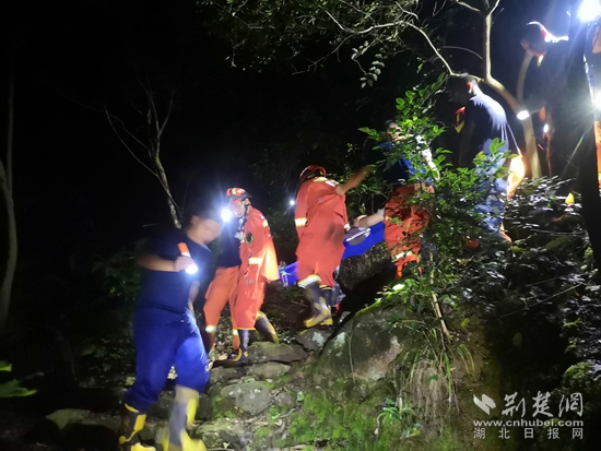 救援人員為老人做好防護(hù)后,采取托舉、肩抬等方法,耗時(shí)約3個(gè)小時(shí),將老人抬下山交由現(xiàn)場(chǎng)等候的醫(yī)護(hù)人員送往醫(yī)院進(jìn)行治療。