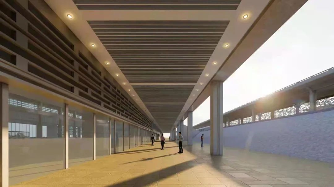 站房主體采用鋼筋混凝土框架結(jié)構(gòu),大屋蓋部分為鋼桁架結(jié)構(gòu),車場規(guī)模在既有車場3臺8線基礎(chǔ)上,新建島式站臺1座、到發(fā)線1條。
