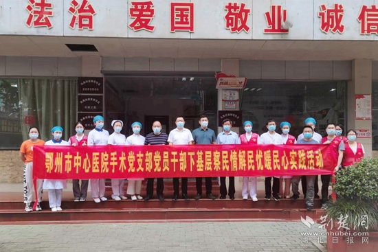 荊楚網(wǎng)(湖北日?qǐng)?bào)網(wǎng))訊(通訊員 劉超 曹鐘誠(chéng))7月18日上午,鄂州市中心醫(yī)院手術(shù)黨支部20余名黨員干部前往南塔社區(qū)開(kāi)展“下基層察民情解民憂暖民心”實(shí)踐活動(dòng),幫助社區(qū)居民群眾提高自我保健意識(shí),建立科學(xué)、文明、健康的生活方式。