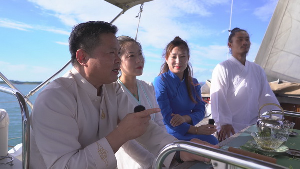 “采仙山之靈氣,納碧水之潤(rùn)澤”。在碧波蕩漾的太極湖上,武當(dāng)文化學(xué)者與愛(ài)好者圍繞煙波浩淼的丹江口水庫(kù)、舉世矚目的南水北調(diào)中線(xiàn)工程、72峰朝大頂?shù)莫?dú)特奇觀、沉睡于漢水之下的均州古城、國(guó)學(xué)經(jīng)典《道德經(jīng)》,看老子像、眺天柱峰、尋水下城,品茶論道、談古論今,呈現(xiàn)出“泛舟江湖”的唯美意境。