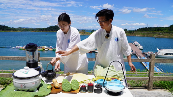 “大暑”是一年中天氣最熱、濕氣最重的時(shí)節(jié),此時(shí)節(jié)養(yǎng)生保健的重點(diǎn)是“防暑”和“祛濕”。泛舟歸來(lái),武當(dāng)文化學(xué)者與愛(ài)好者一起習(xí)練武當(dāng)活骨養(yǎng)生功,品嘗新鮮嫩蓮制成的鮮藕涼茶、蓮子荷葉粥,感悟武當(dāng)養(yǎng)生文化的魅力。